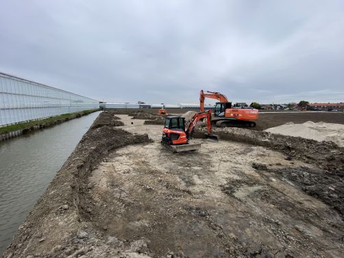 In onderaanneming van Klaas Quartel B.V. maken wij een kavel bouwrijp voor de bouw van het nieuwe kassencomplex van Amazone Plants. Amazone Plants is de specialist in de teelt van de tropische plant Anthurium. Onze werkzaamheden omvatten onder andere: Het voorbereidende grondwerk, aanbrengen verhardingen, egaliseren perceel en het aanleggen van leidingwerken. Ook leggen wij het voorterrein aan inclusief terreinafwatering. De projectlocatie is aan de Mariëndijk in Honselersdijk.