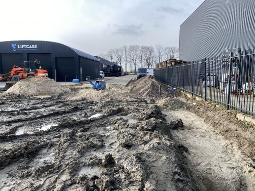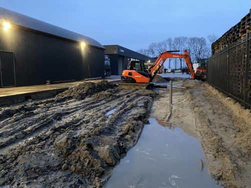 In 2026 gaan wij verder op deze locatie met het grondwerk voor de uitbreiding van de bedrijfshal, en het aanleggen van wederom een nieuwe stuk terrein.
