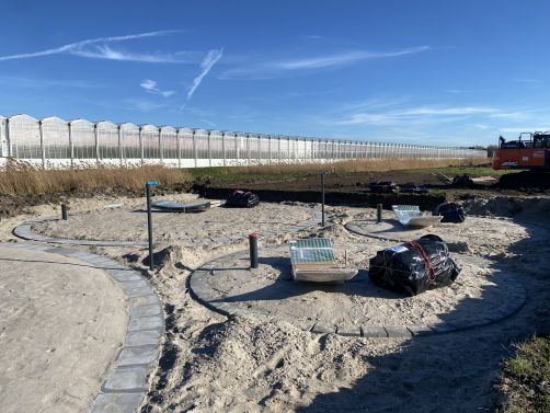 In opdracht van Future Flowers, de specialist in de kweek van de mooie Calla bloem, maken wij een kavel bouwrijp voor de uitbreiding van hun kassencomplex. Onze werkzaamheden omvatten: verwijderen en aanbrengen van beschoeiingen, aanbrengen blokkenmat, aanbrengen leidingwerken, grondwerk voor de bouw van de wateropslagsilo's en het bouwrijpmaken van het perceel. De projectlocatie ligt aan de Laan van Boekesteijn in De Lier.