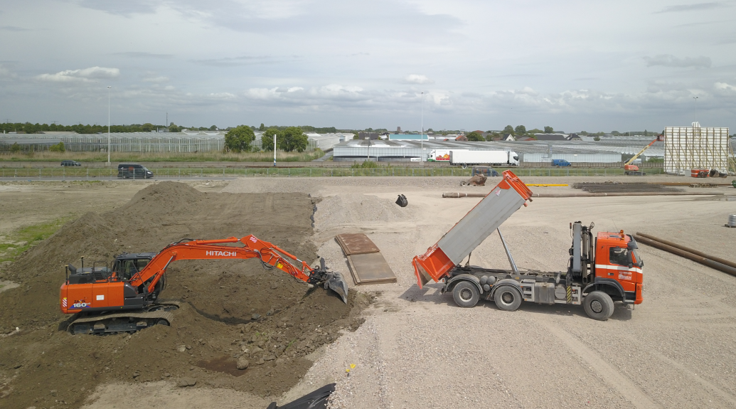 In opdracht van Cooperatie Growers United maken we het kavel bouwrijp voor de bouw van het nieuwe verpakkingscentrum. Onze werkzaamheden omvatten o.a. het aanbrengen van voorbelasting, erfverharding, ophoging maaiveld voor perronvloer, grondwerk bouw en de uiteindelijke terreininrichting. De locatie van dit project is op industrieterrein Honderdland te Maasdijk.