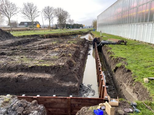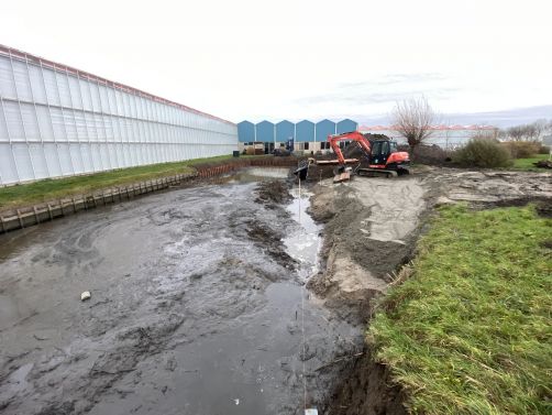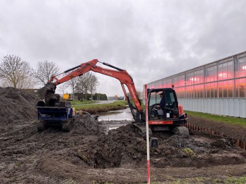 In opdracht van Lans, de specialist in de teelt van tomaten, hebben wij de volgende werkzaamheden uitgevoerd: graven vervangend water, aanbrengen beschoeiingen en het afwerken van het terrein. De projectlocatie ligt aan de Scheeweg in De Lier.