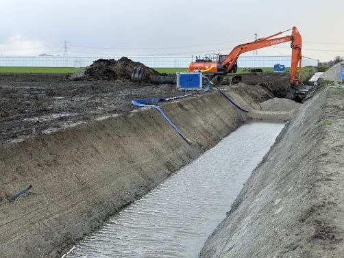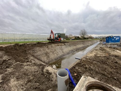 In opdracht van The Valley, een tomaten- en komkommerteler, zijn we reeds een aantal maanden druk bezig met het bouwrijpmaken van nieuwbouwlocatie "Prince Valley". Een nieuw perceel van ca. 13 ha. voor een tuinbouwkas. Dit bevat de volgende werkzaamheden: Graven en dempen van watergangen, aanbrengen van zinkers en duikers, egaliseren en draineren van 13 ha. kas-perceel, en het aanleggen van het voorterrein. Daarbij realiseren wij ook een tweetal waterbassins. De projectlocatie is aan de Prinsenweg in Vierpolders.