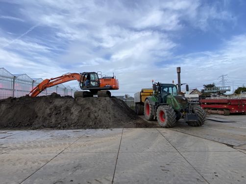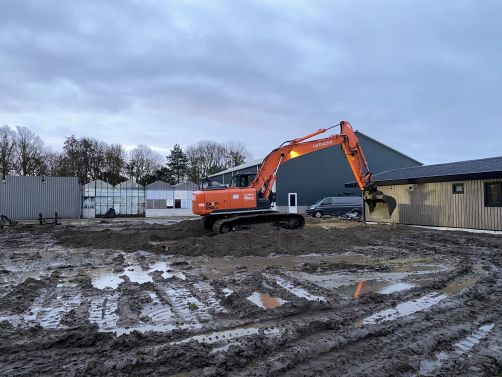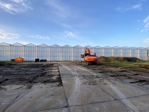 In opdracht van T-Bouwsystemen, specialist in het realiseren van hoogwaardige, geïsoleerde bedrijfsruimten, richten wij het buitenterrein opnieuw in. Dit houdt de volgende werkzaamheden in: Opbreken bestaande situatie, aanbrengen textiel en menggranulaat, aanbrengen nieuwe betonplaten & goten en de uiteindelijke terreininrichting. De projectlocatie ligt aan de Maasdijk.