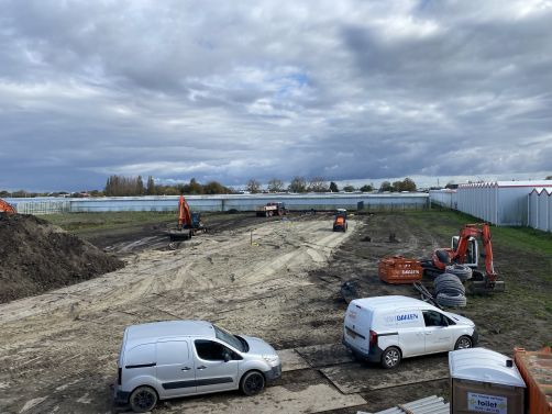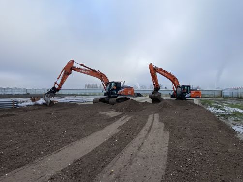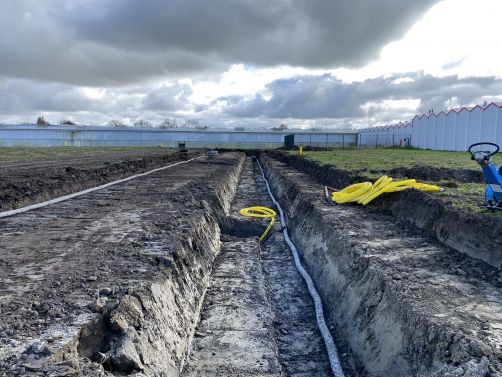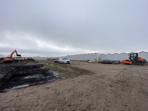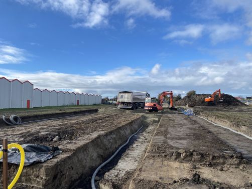 In onderaanneming van Van Mierlo maken wij een kavel bouwrijp voor de bouw van drie hoogwaardige bedrijfspanden aan de Fustmeester in Kwintsheul. Onze werkzaamheden omvatten: voorsleuven en cunetten graven, riolering aanbrengen, aanleggen drainage, aanleggen wegfundatie en het klaarleggen van heiplateau's.